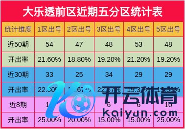 近50期,一区出号54个,二区出号47个,三区出号48个,四分区出号53个,五分区出号48个。五区数据对比中,1分区出号较多。