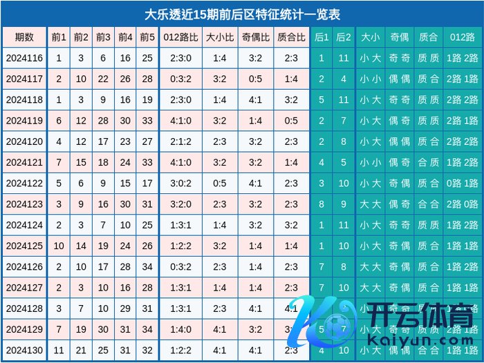 大乐透第24130期奖号:11、21、25、31、32 + 04、10。龙头为11,凤尾为32,012路比为1:2:2,当期出现连号31,32。