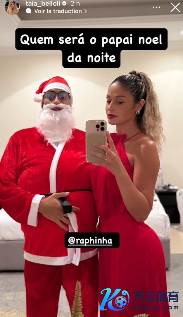 相片中世界杯体育信息,拉菲尼亚扮成了圣诞老东说念主搞怪,太太还为此配文:谁会成为圣诞老东说念主