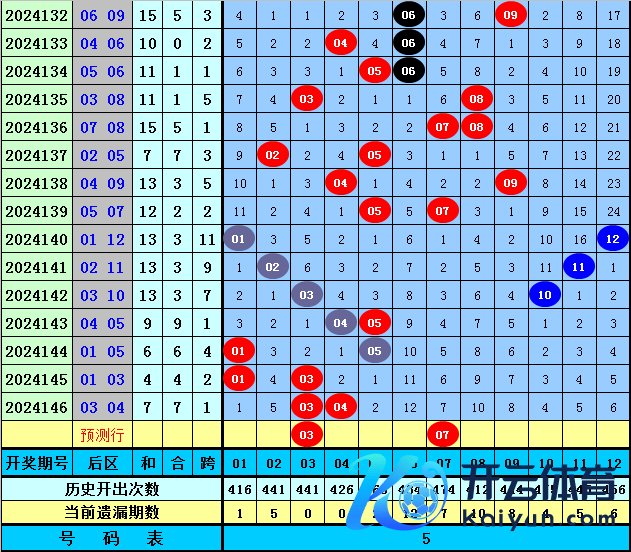 大乐透第2024147期前区012路比保举2:0:3。