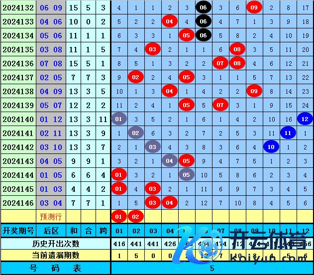 大乐透第2024146期开出奖号:前区05、20、21、22、32,后区03、04。当期前区012路比为1:1:3,奇偶比为2:3,和值为100,跨度为27,后区奖号全在一区。