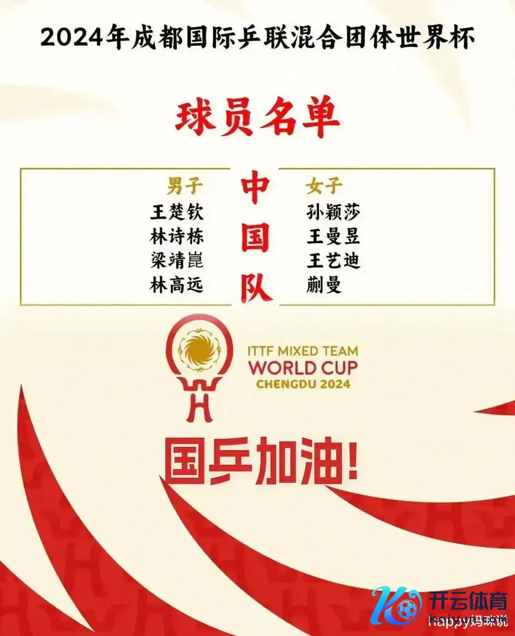 与王楚钦一同参赛的还有林诗栋、梁靖崑和林高远。